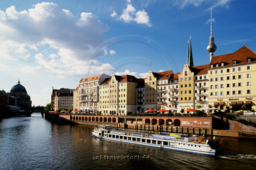 Berlin, center,Nikolaiviertel,Nikolai Quarter,river Spree,tourist boat, |