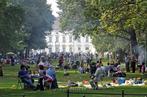 Berlin Tiergarten, park, turkish people barbecue, castle Bellvue |