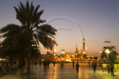 United Arab emirates Dubai, Bur Dubai, The Grand mosc , Dubai creek promenade at dusk | Dubai, Grosse Moschee an der Creek Promenade bei Sonnenuntergang |