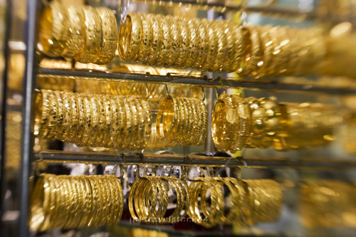 Dubai Deira gold market, gold souq, shop window | Dubai Gold Souk, Schaufenster |