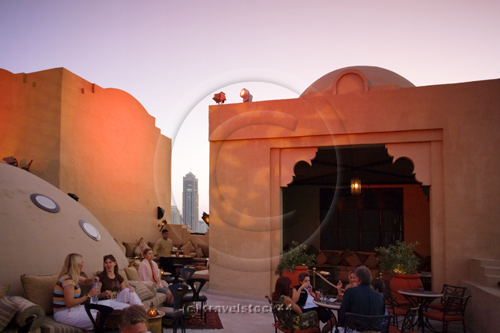 United Arab Emirates Dubai, One & Only Royal Mirage, Arabian court, five star Hotel at Jumeirah beach , Rooftop bar sunset