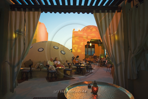 United Arab Emirates Dubai, One & Only Royal Mirage, Arabian court, five star Hotel at Jumeirah beach , Rooftop bar sunset |